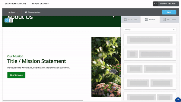 Although each template starts with a nice variety of rows, but we know sometimes you need to add additional sections of content. We have an ever growing section of default rows to start with — simply drag & drop.